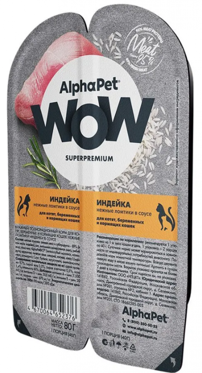 Альфапет Вау Суперпремиум - влажный полнорационный корм для котят, беременных и кормящих кошек нежные ломтики индейки в соусе