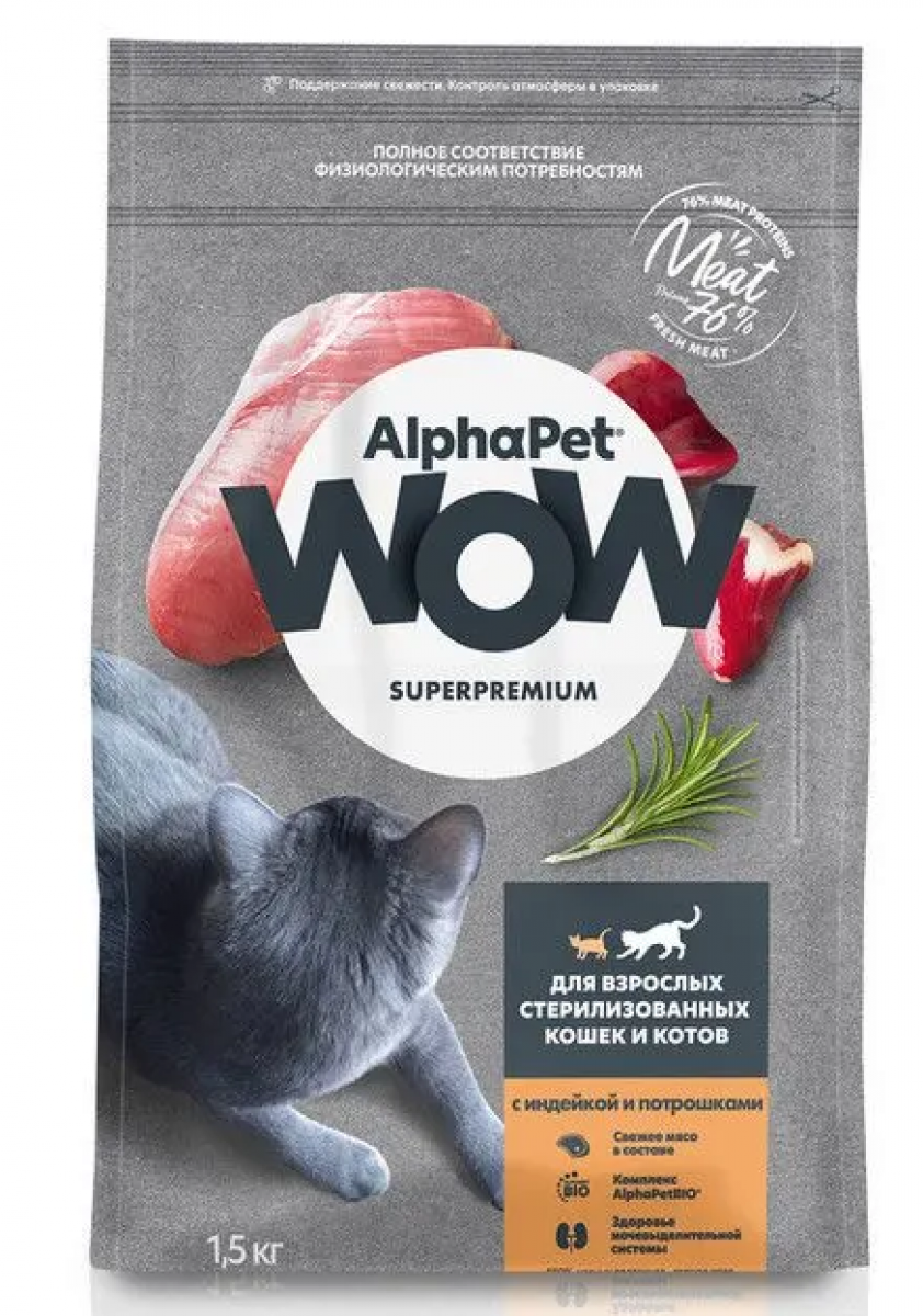 Сухой корм AlphaPet WOW Superpremium (Альфапет) рекомендован для стерилизованных кошек и котов