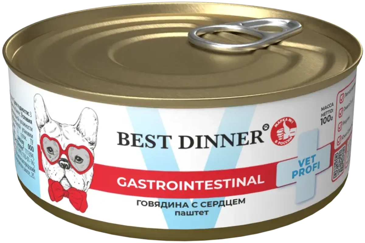 Best Dinner Exclusive Vet Profi Gastro Intestinal диетический влажный корм для собак с чувствительным пищеварением, с говядиной и сердцем 100 г