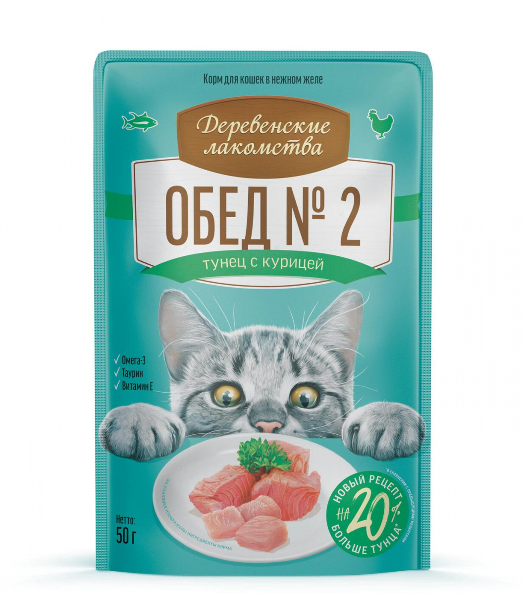 Деревенские лакомства Обед № 2 влажный корм для кошек Тунец с курицей 50 г