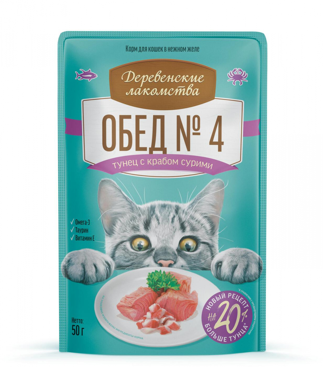 Деревенские лакомства Обед № 4 влажный корм для кошек Тунец с крабом сурими 50 г