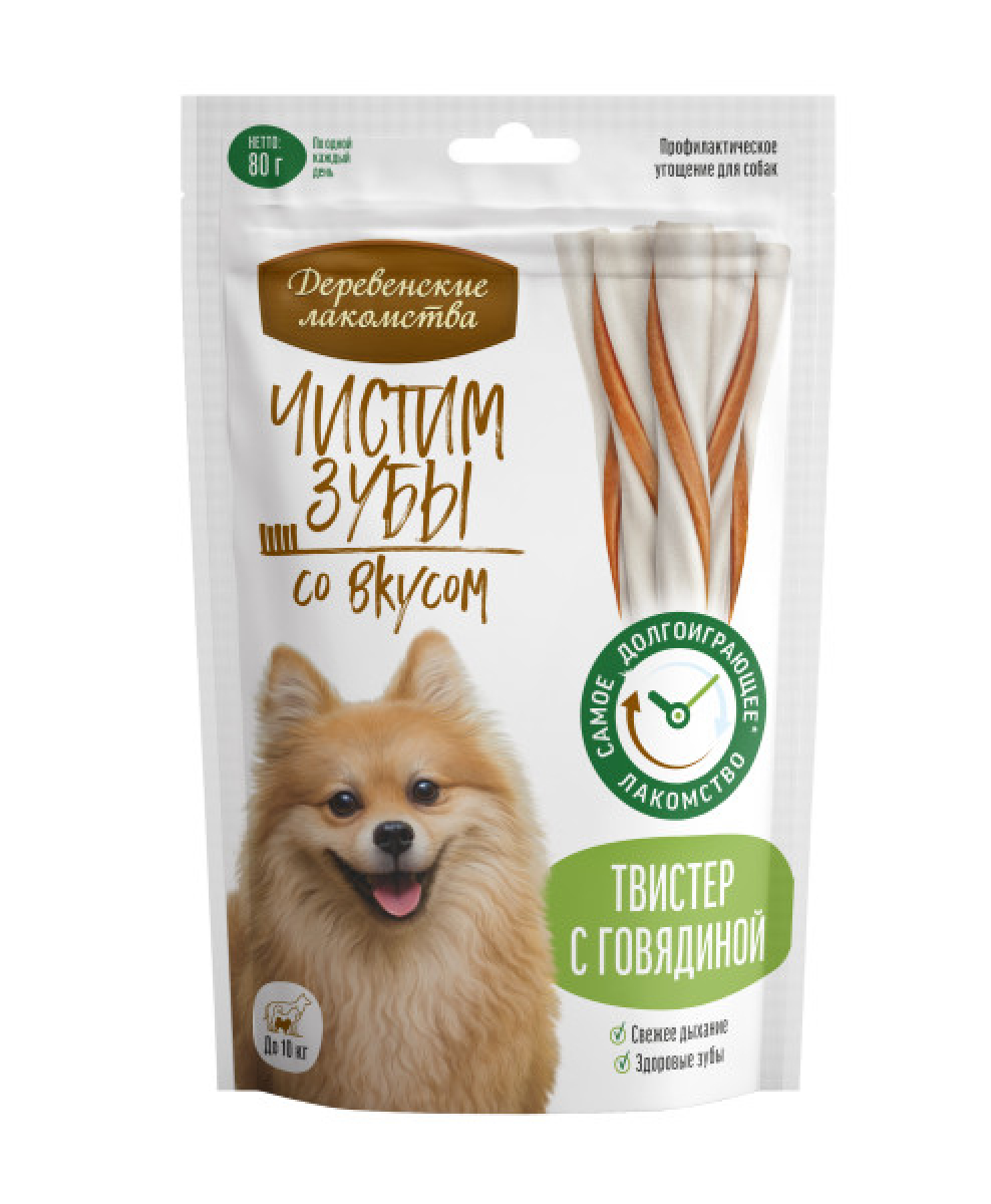 Деревенские Лакомства Твистер с говядиной для мелких собак 80гр