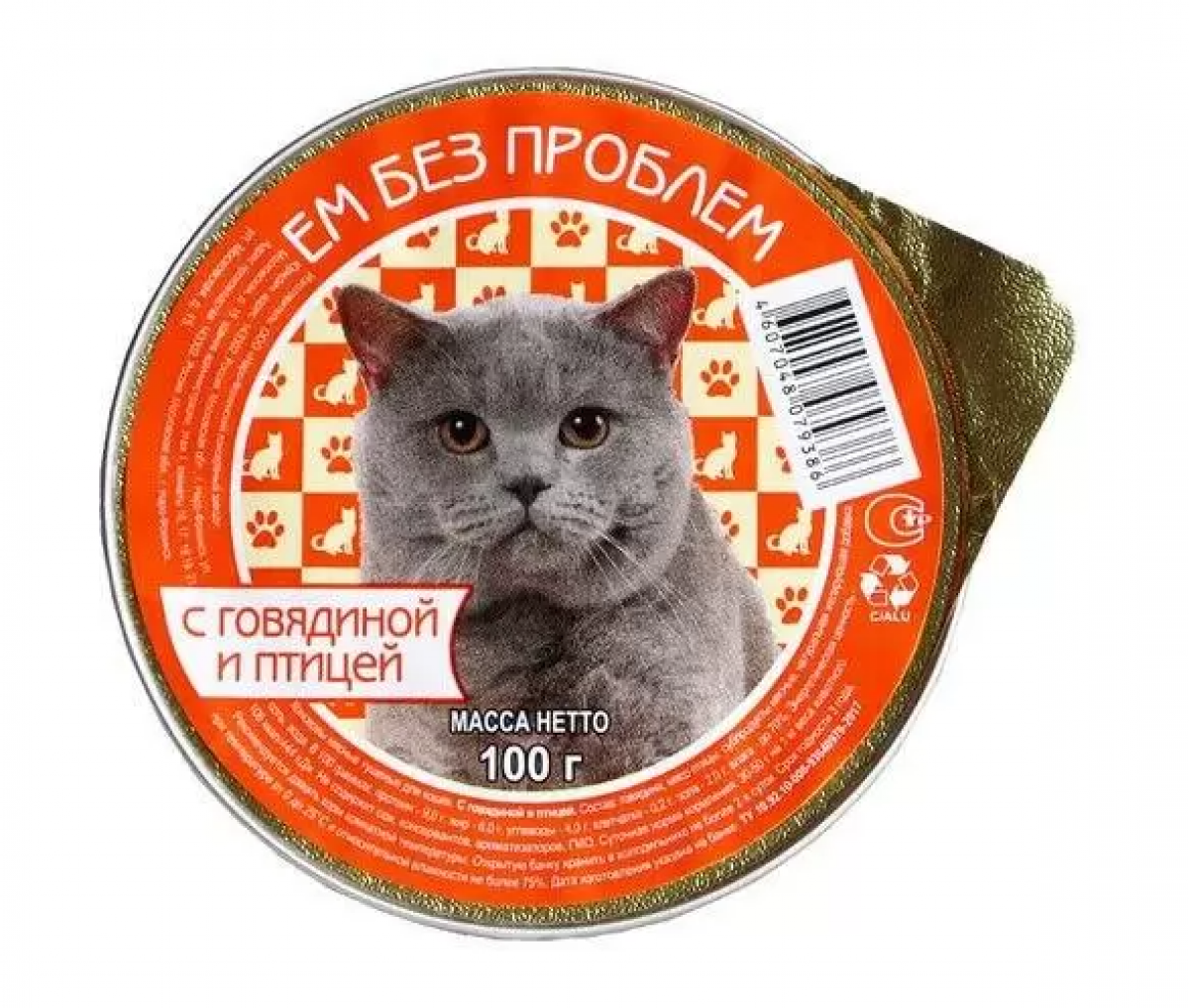 Состав: говядина, мясо птицы, субпродукты мясные, натуральная желирующая добавка, соль, вода. Протеин-9,0 г., жир-6,0., углеводы-4,0 г., клетчатка-0,2 г., зола-2,0 г., влага-до 70%.