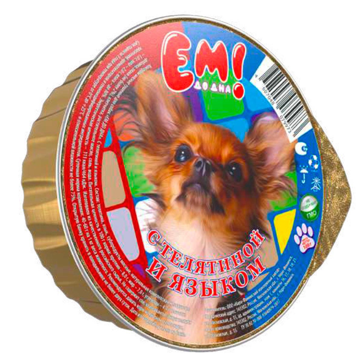 Состав: телятина; язык; субпродукты мясные; натуральная комплексная желирующая добавка; злаки (не более 2%); клетчатка; растительное масло; соль; вода