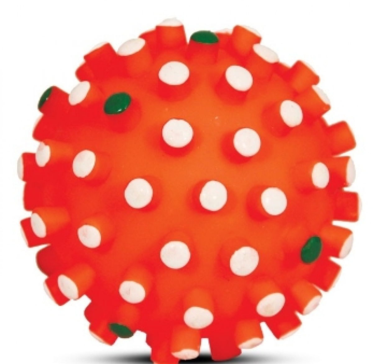 Виниловые игрушки помогают собаке снять стресс, если хозяина нет дома, массируют десны, а также способствуют формированию правильного поведения у собаки. Игрушка легко моется и не требуют особого ухода. Мяч с шипами станет прекрасным подарком для неугомонного четвероногого питомца. С пищалкой внутри. Размер d100мм.