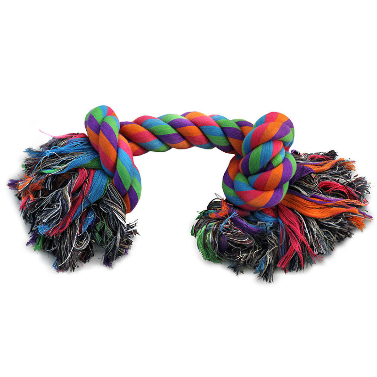 Собаки обожают играть с веревочными игрушками, так как их можно грызть, трепать и носить в зубах. Такие игрушки отлично массируют десны и очищают зубной налет во время игры. Веревки сплетены из нитей натурального хлопка, поэтому безопасны для здоровья Вашего питомца. Цвет: разноцветный. Вес 60-70г. Длина - 200мм.
