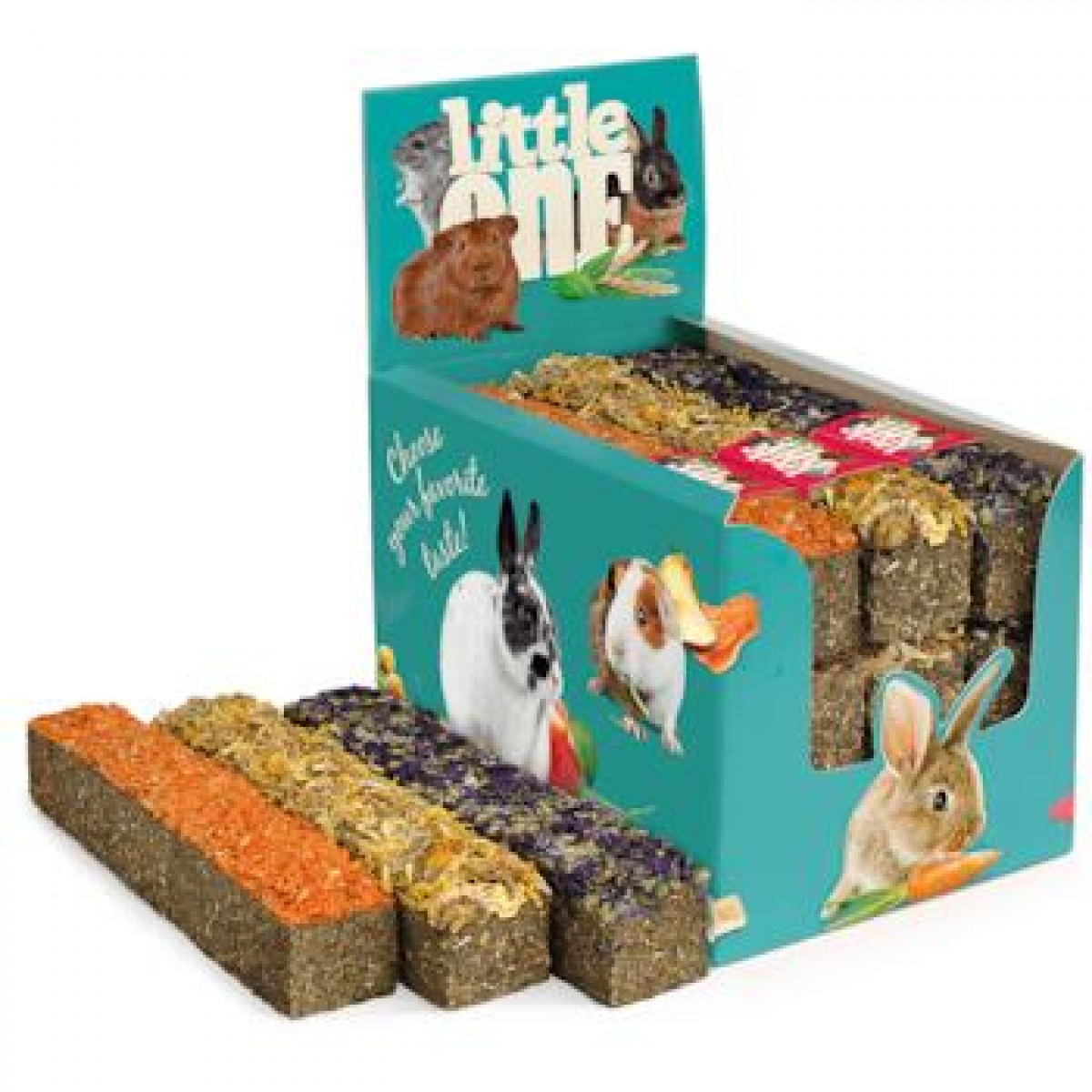 Лакомство-игрушка для всех видов грызунов и кроликов. Палочка приготовлена из ароматных луговых трав и покрыта одним из трех вкуснейших топпингов: цветки календулы, морковь или цветки мальвы.