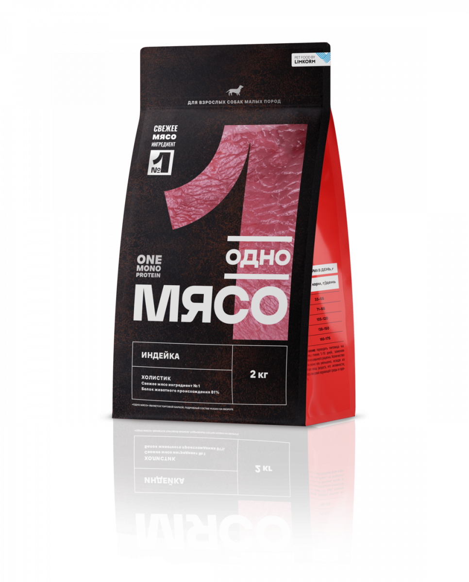 Сухой полнорационный корм ОДНО МЯСО для взрослых собак малых пород с мясом индейки.