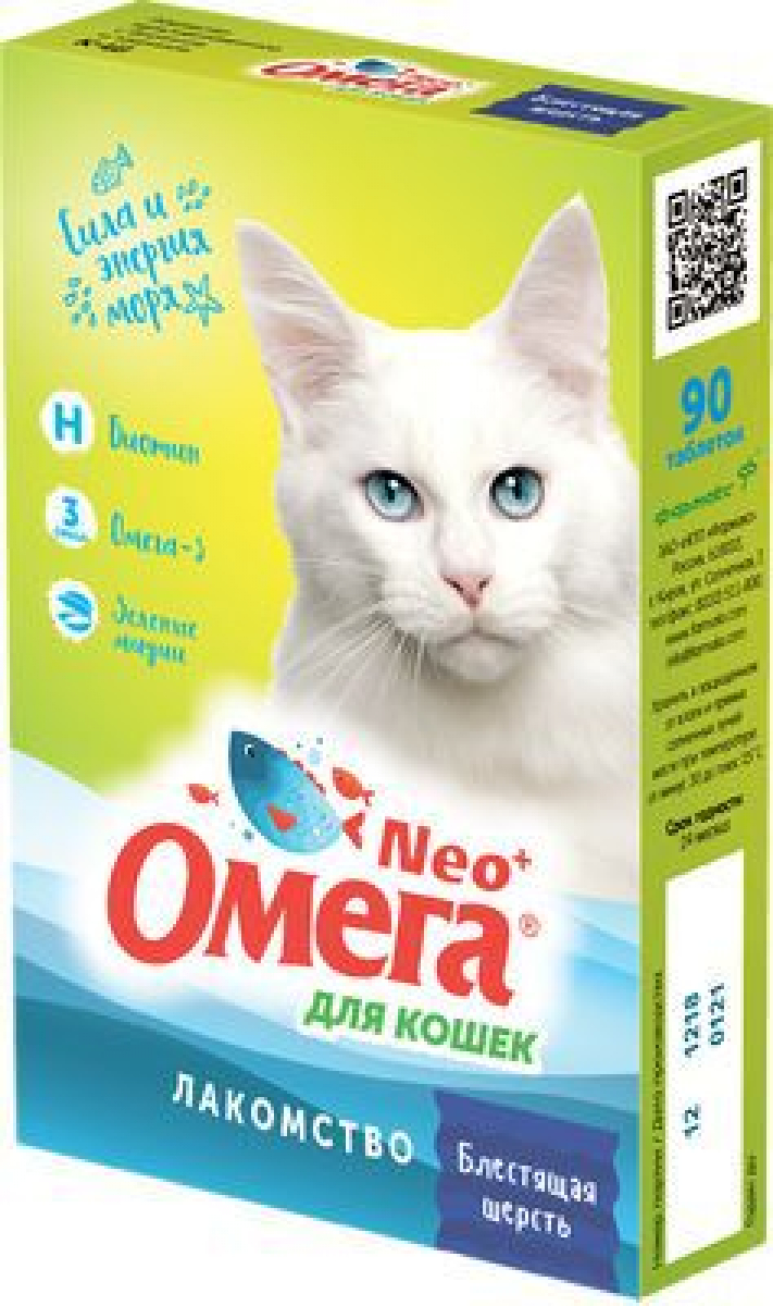 Витамины ОМЕГА NEO+ - кормовая добавка, содержащая биотин, который придает шерсти кошек блеск и густоту. Новозеландские зеленые мидии укрепляют хрящевую ткань суставов, Омега-3 кислоты поддерживают иммунитет и улучшают состояние кожи и шерсти. Пивные дрожжи натуральный источник витаминов группы В.