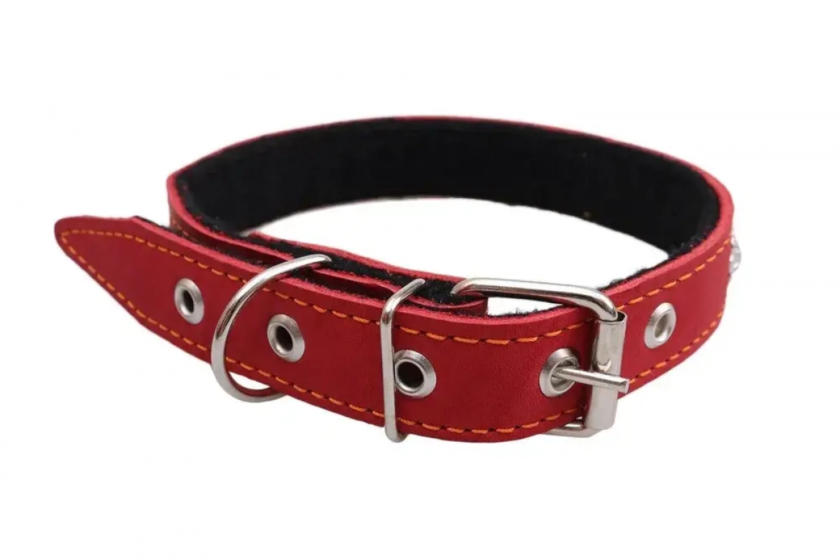 Прочный ошейник из натуральной кожи укреплен двойной прошивкой. Оснащен стальным кольцом и надежной фурнитурой. Он устойчив к влаге и морозу, не размокает, не деформируется, не скапливает грибков и бактерий.