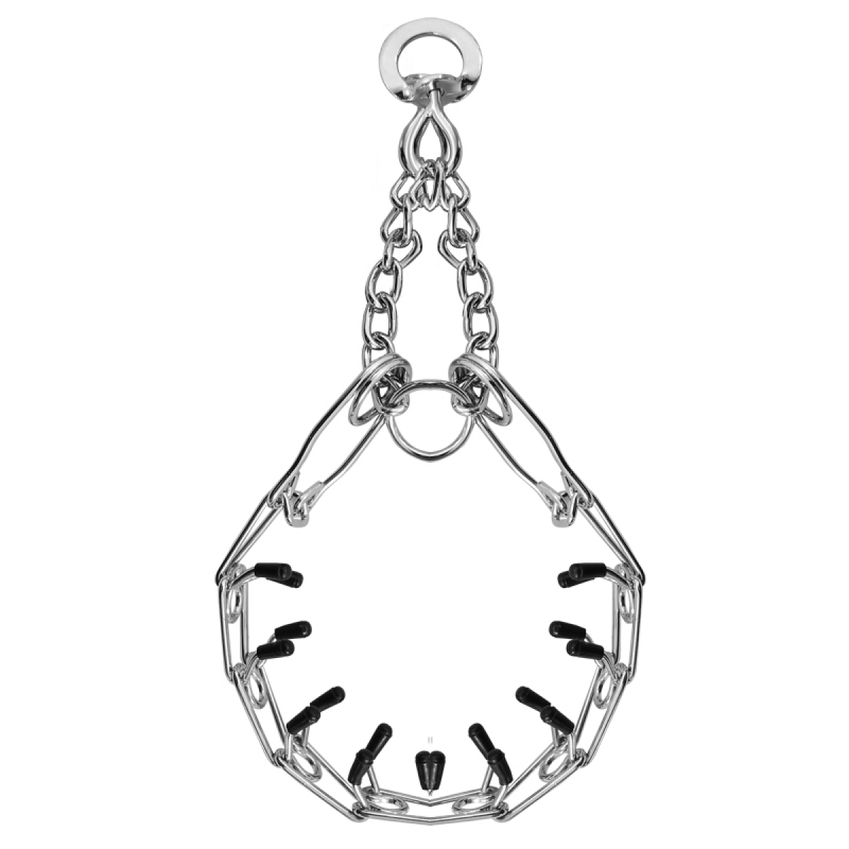 Строгий ошейник-удавка с защитными пластиковыми насадками на шипах - функциональный аксессуар для собак средних и крупных пород и эффективная мера воздействия при длительных прогулках и интенсивной дрессировке. Расположенные внутри ошейника шипы позволяют координировать все действия собаки и держать ее под строгим контролем. При этом пластиковые насадки на шипах защищают кожу питомца от царапин и повреждений. Диаметр проволоки - 4мм, длина ошейника - 600мм. Цвет: хром.