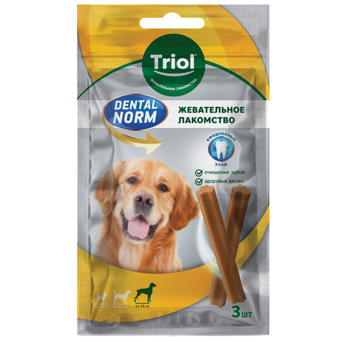 Лакомство для собак DENTAL NORM - это простой и эффективный уход за полостью рта. Зубной камень у собак - распространенное явление, особенно у животных старше трех лет. Поэтому важно знать, как избавиться и предотвратить его появление. Ежедневное употребление лакомств DENTAL NORM от TRIOL помогает снизить риск заболеваний полости рта, качественно очистить зубы, уменьшить налет и освежить дыхание.