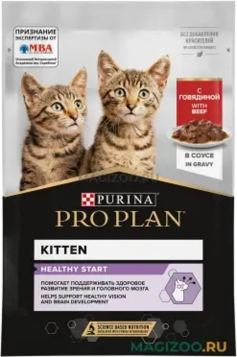 Влажный корм Pro Plan Kitten содержит много калорий, обеспечивает котенка высокобелковым питанием и определенной комбинацией витаминов и минералов для формирования мускулатуры, роста костей и развития мозга.