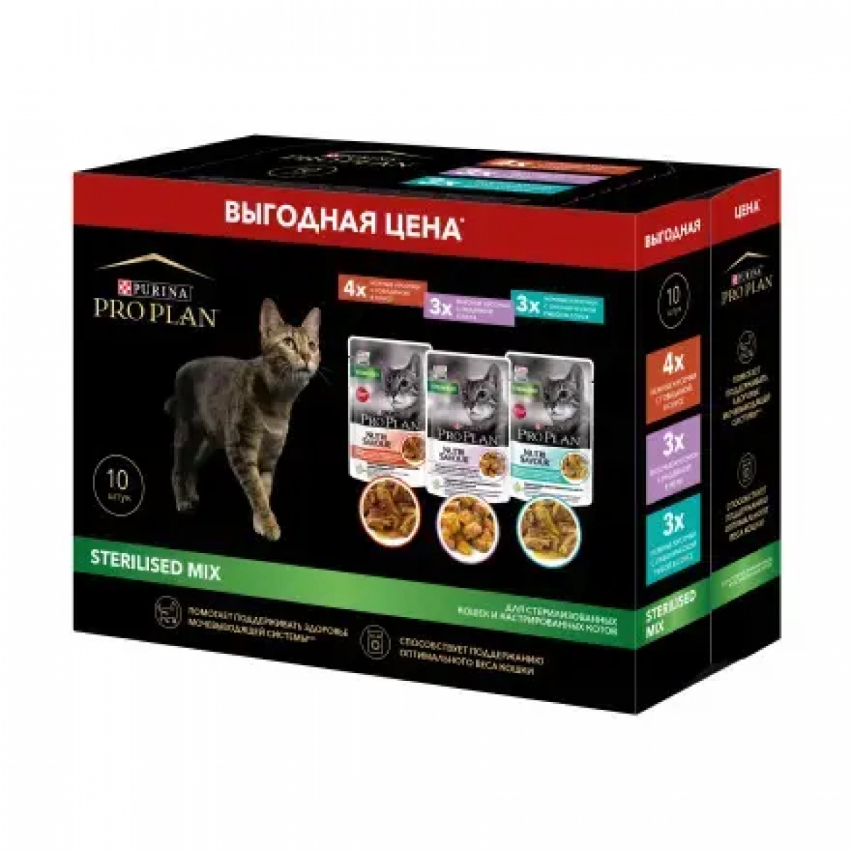 1. PURINA PRO PLAN NUTRISAVOUR для взрослых стерилизованных кошек и кастрированных котов, с говядиной в соусе.