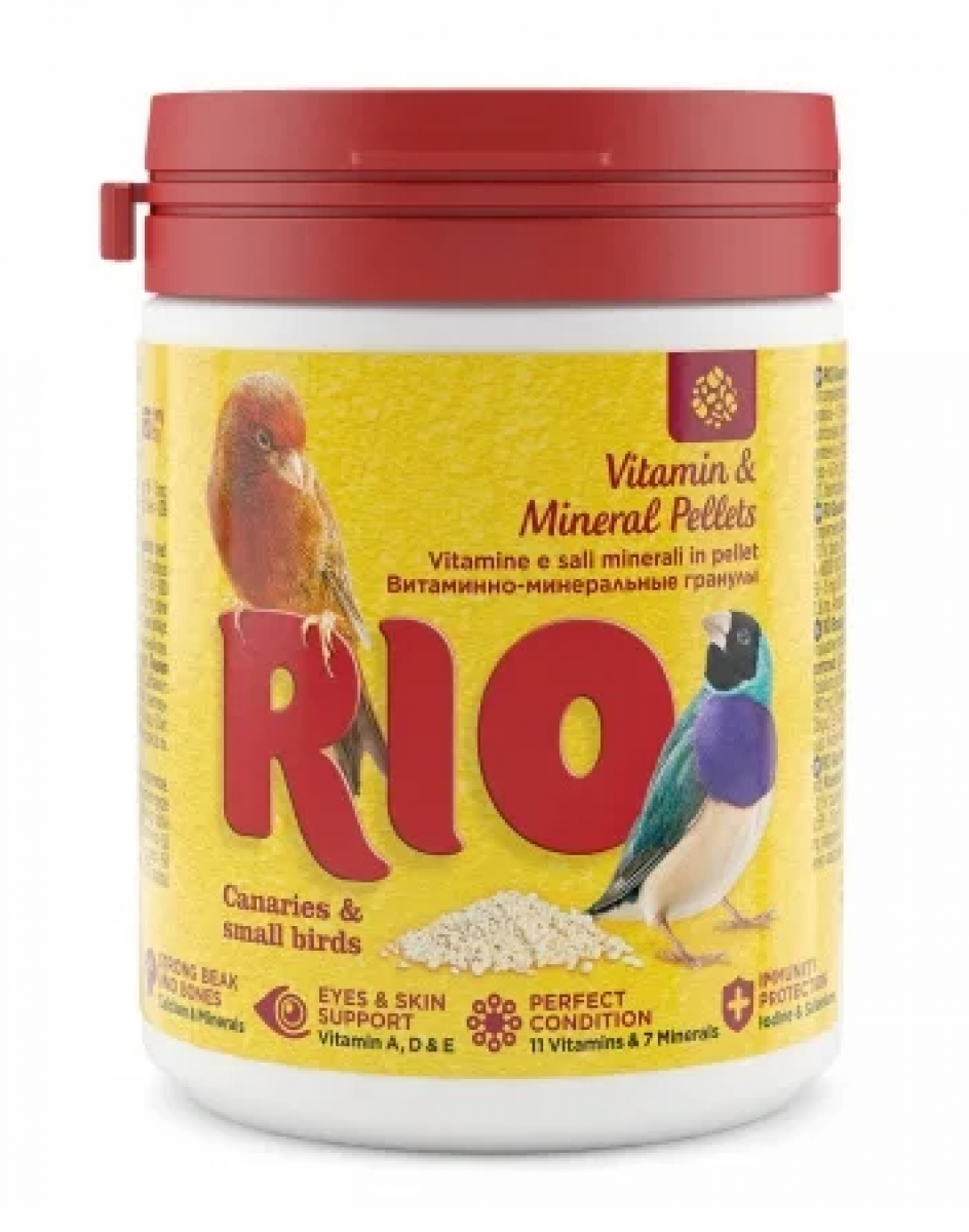 Витаминно-минеральные гранулы RIO содержат комплекс важнейших витаминов, микро- и макроэлементов, необходимых для полноценного питания и здоровья домашних птиц. Ежедневное применение функционального корма исключает появление неблагоприятных последствий при несбалансированном питании. Он способствует укреплению иммунитета, улучшению зрения и состояния кожи и перьев.