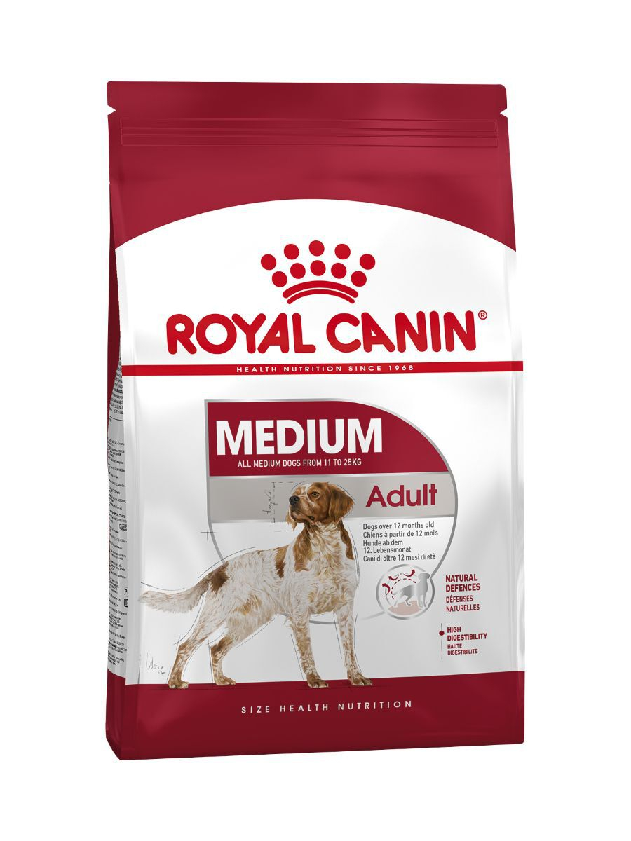 Полнорационный корм для взрослых собак средних размеров (весом от 11 до 25 кг) в возрасте от 12 месяцев до 7 лет