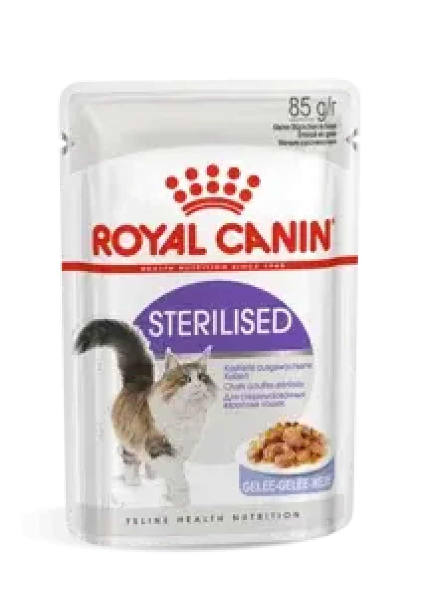 Влажный корм для стерилизованных кошек Royal Canin Sterilised (Роял Канин Стерилайзд) кусочки в желе способствует поддержанию здоровья мочевыделительной системы, помогает сохранить идеальный вес благодаря точно подобранному содержанию энергии. Оптимальное соотношение белков, жиров и углеводов в корме Sterilised способствует долговременному сохранению вкусовой привлекательности корма.