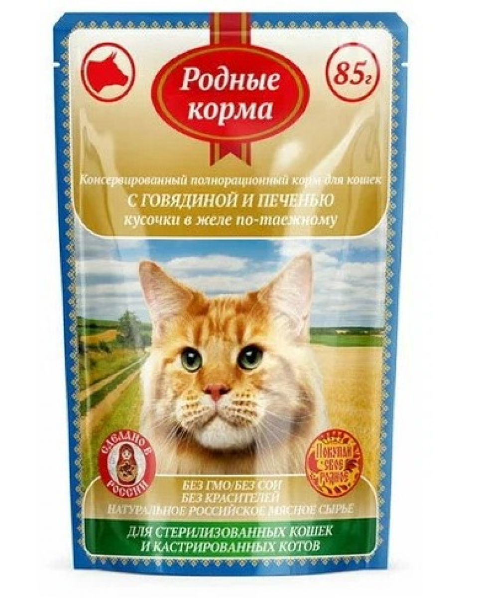 Ваш питомец полюбит нежные и сочные кусочки в соусе паучей Родные Корма. Сбалансированное сочетание натуральных мясных ингредиентов, витаминов и минеральных веществ делает паучи Родные Корма полнорационным кормом. Благодаря входящей в состав корма печени, Ваш питомец получит необходимое для взрослого животного количество белка и витаминов, которое поможет сохранить физическое здоровье и вес в норме.