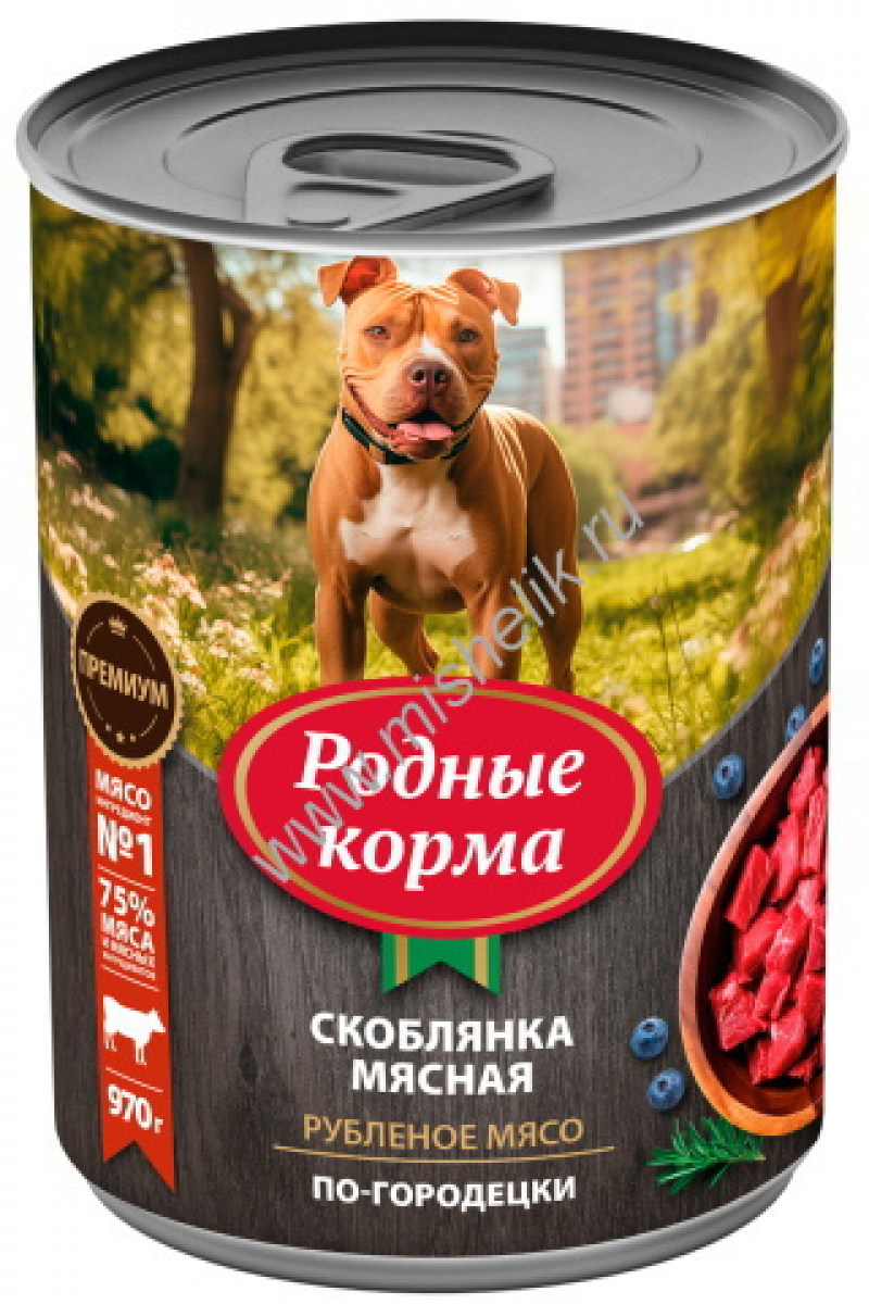 Состав: Говядина (не менее 15%), субпродукты мясные, желирующая добавка, растительное масло, соль, вода.
