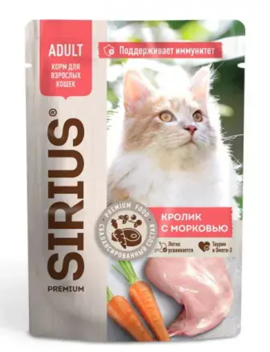 SIRIUS (Сириус) – влажный корм премиум-класса для полноценного ежедневного рациона взрослых кошек.