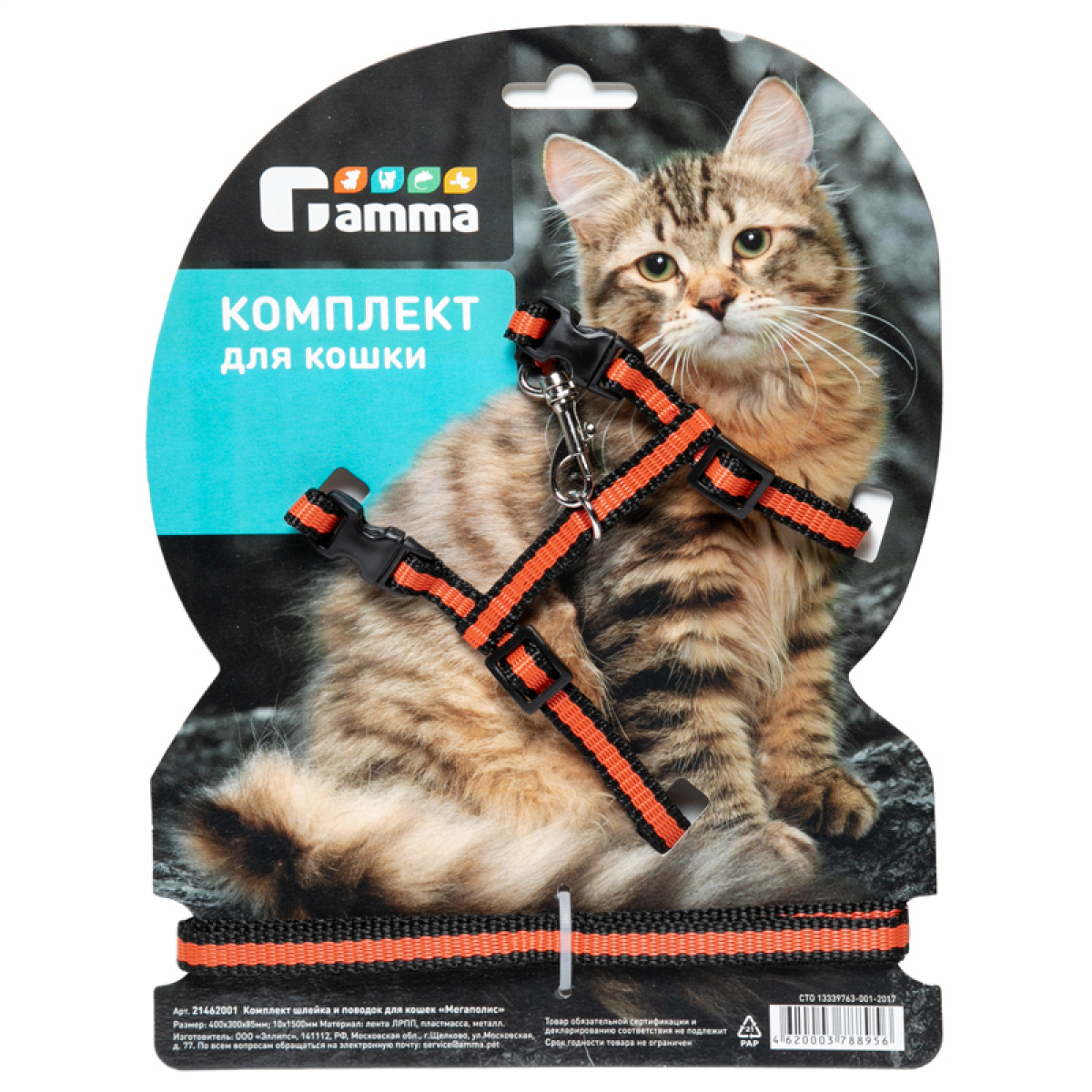 Комплект для кошек включает изящную шлейку и яркий поводок, изготовленные из качественного капрона с использованием металлической и пластиковой фурнитуры. Регулируемая шлейка с металлическими заклепками и надежной пряжкой обеспечат комфортную фиксацию изделия на теле животного без причинения вреда. Поводок длиной 1,5 метра оснащен специальным карабином, вращающимся вокруг собственной оси во избежание запутывания поводка на прогулке. Стойкий и насыщенный цвет комплекта не растворяется и не линяет, благодаря чему изделие не потеряет первоначального вида и не запачкает шерсть животного. Размер шлейки 400*300*85мм, поводка 10*1500мм.