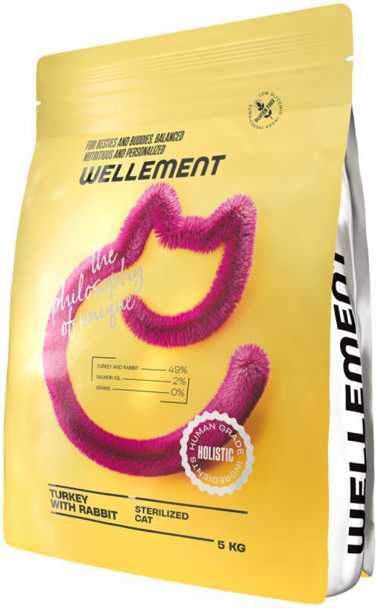 Wellement для стерилизованных кошек с индейкой и кроликом содержит высокое содержание протеина, при этом имеет низкий уровень углеводов и жиров, что позволяет кошке получить необходимую энергию, не набирая лишний вес. А если ваш котик или кошечка мало пьет, то вы можете комбинировать сухой корм Wellement для стерилизованных кошек с влажными кормами Wellement и профилактировать таким образом вероятные проблемы с кишечником или мочевыделительным трактом.